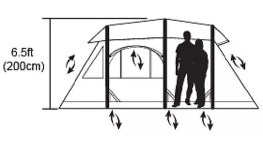 Wynnster Bordeaux 6 Vis-A-Vis Tent, 6 Person Tent, Pole & Sleeve Tent - Green